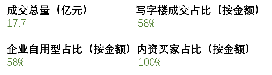 自用企業(yè)購置辦公樓相較于投資更加活躍,占比達(dá)58%,某自用買家購置豐臺金茂廣場一棟寫字樓。核心區(qū)域的更新改造方興未艾,翰同資本收購?qiáng)W體區(qū)域一座小型零售單體,后期將改造為辦公。