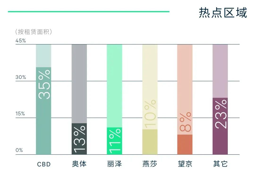 較去年同期,全市和五大核心商圈市場凈吸納量分別同比上升24.1%和27.3%,至18.5萬和6.5萬平方米,其中麗澤和CBD分列前兩位,是主要貢獻(xiàn)區(qū)域。