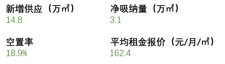 受互聯(lián)網(wǎng)頭部企業(yè)的收縮影響,季內(nèi)整體市場活躍度有所放緩,凈吸納量環(huán)比下降55%至3.1萬平方米,空置率上調(diào)至18.9%。