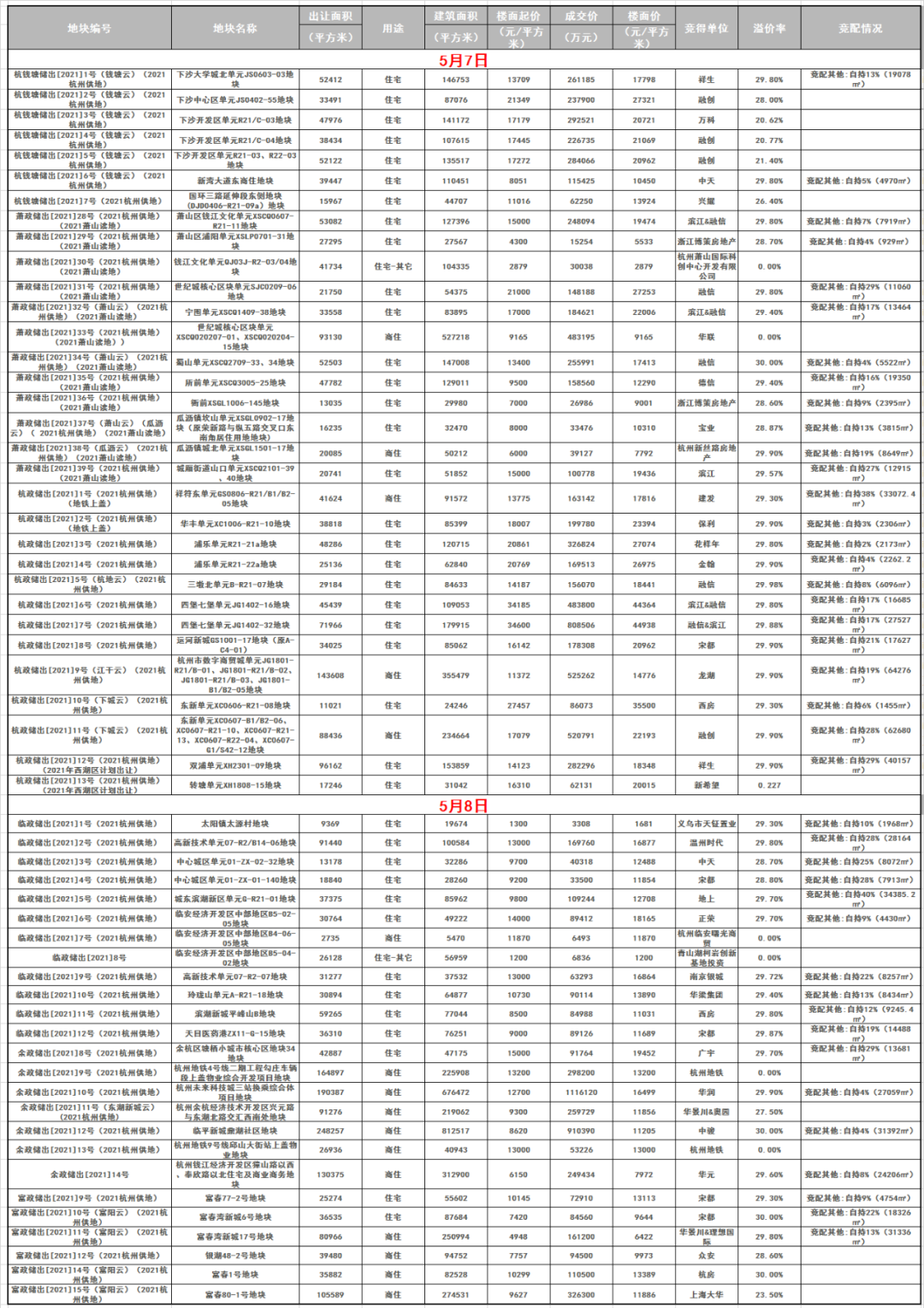 杭州第一批集中供地的57宗地塊悉數出讓,每一宗地塊都是爆點