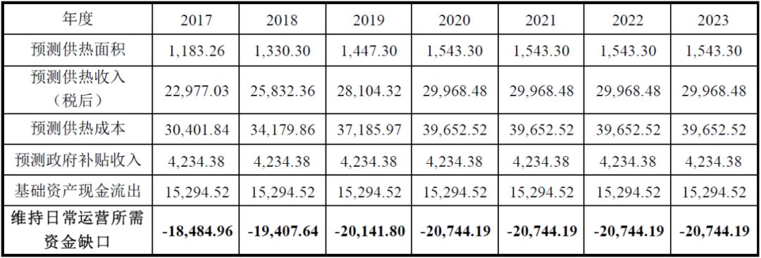 但是上述操作一般會降低融資規(guī)模,所以操作中,出于擴大融資規(guī)模的考量,往往采用第二種操作模式,即全部收入納入專項計劃,運營成本由母公司或其他實力較強的關(guān)聯(lián)公司提供運營支持。此外,基礎(chǔ)設(shè)施類企業(yè)通常還會獲得一部分的政府補貼。通過上述操作使原始權(quán)益人收回的現(xiàn)金流能夠覆蓋相應(yīng)的運營成本。以“平安烏魯木齊經(jīng)開建投供熱合同債權(quán)資產(chǎn)支持專項計劃”為例,基礎(chǔ)資產(chǎn)轉(zhuǎn)讓后維持供熱企業(yè)日常運營所需資金測算如下:
