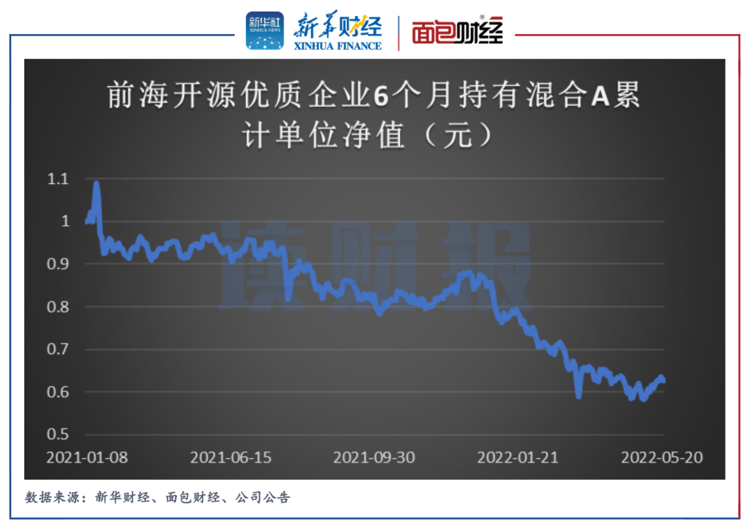 前海開源基金旗下明星次新基金前海開源優(yōu)質(zhì)企業(yè)6個月持有混合正在經(jīng)歷深度回撤。截至2022年5月23日,該基金的單位凈值已跌至0.65元以下,與業(yè)績基準(zhǔn)的差距逐步拉大,成立至今累計跑輸基準(zhǔn)近15個百分點。
