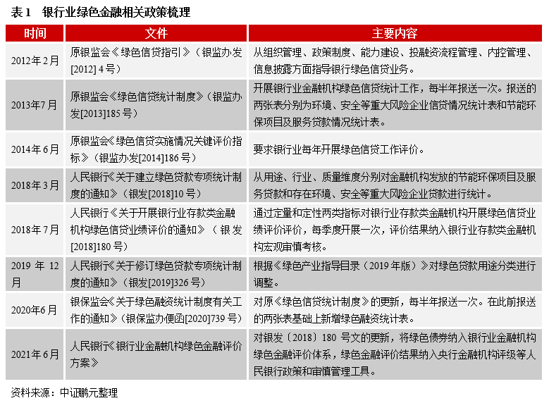 2012年原銀監(jiān)會發(fā)布《綠色信貸指引》指導銀行綠色信貸業(yè)務以來,原銀監(jiān)會、人民銀行相繼發(fā)布了綠色信貸統(tǒng)計相關制度和綠色信貸業(yè)績評價制度。2020年以來,隨著國內綠色金融的繁榮發(fā)展,綠色金融取代綠色信貸,人民銀行、銀保監(jiān)會相繼更新了綠色融資統(tǒng)計制度和綠色金融評價方案。