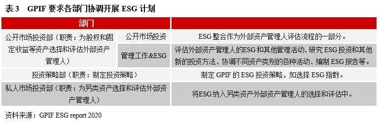 首先,在戰(zhàn)略層面,銀行保險機構可以將ESG納入公司發(fā)展戰(zhàn)略,并設立綠色金融發(fā)展業(yè)務目標,指導綠色金融業(yè)務的發(fā)展,還要向外界披露該戰(zhàn)略,以表達發(fā)展綠色金融的決心。在組織管理上,盡快設立專門的ESG委員會,指定管理人員,統(tǒng)籌綠色金融工作管理、監(jiān)督等。在綠色金融業(yè)務開展過程中要注重各部門之間的協(xié)調,明確各部門的職責,以全球最大的公共養(yǎng)老金投資機構——日本政府養(yǎng)老投資基金(GPIF)為例,GPIF要求公開市場投資部、投資策略部、私人市場投資部以及其他資產(chǎn)管理相關部門協(xié)調實施 ESG計劃。