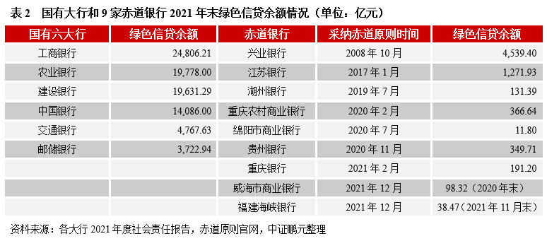 國有大行是國內綠色金融實踐的“排頭兵”,在綠色金融組織管理、綠色貸款、綠色金融信息披露方面表現(xiàn)突出。此外,還通過自身發(fā)行綠色債券、承銷綠色債券、投資綠色債券等其他方式參與綠色金融。除了國有大行外,許多銀行在綠色金融方面的表現(xiàn)也可圈可點。一些銀行宣布采納赤道原則(赤道原則旨在判斷、評估和管理項目融資中環(huán)境和社會風險,倡導金融機構對項目融資中的環(huán)境和社會問題盡到審慎性核查義務)成為赤道銀行,截止2022年5月末,國內有9家赤道銀行。一些銀行創(chuàng)新綠色金融實踐,例如,多個銀行創(chuàng)建綠色特色支行,甚至已經(jīng)有部分銀行(如浦發(fā)銀行張江科技支行與閔行支行等)實現(xiàn)了自身運營的碳中和,被認證為“碳中和”銀行