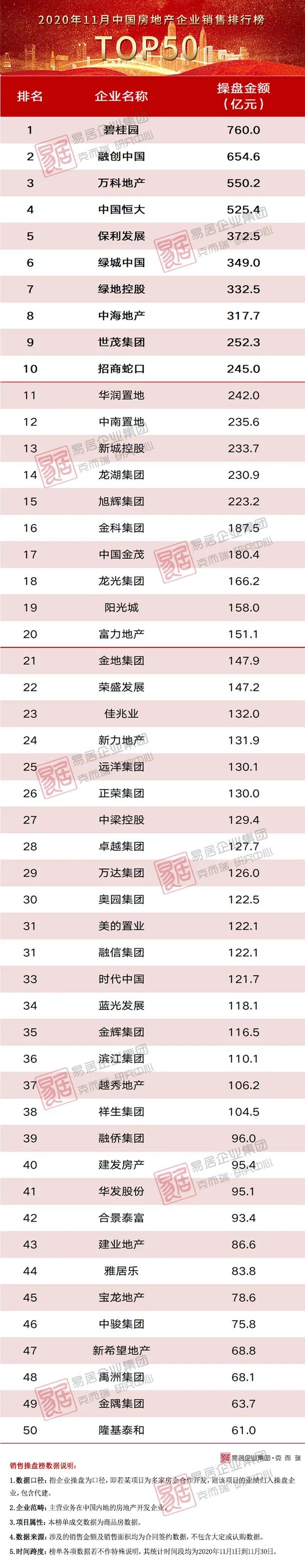 表:2020年1-11月百強房企業績表現及同比變動(億元)