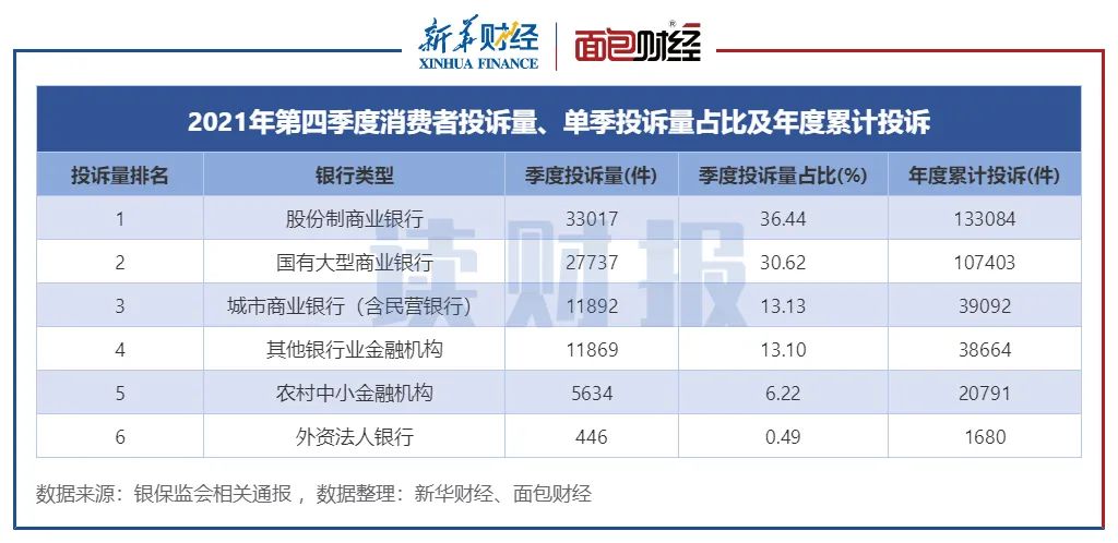 原標(biāo)題: 【讀財(cái)報(bào)】銀行業(yè)消費(fèi)者投訴透視:銀保監(jiān)會(huì)2021年處理逾34萬(wàn)件投訴 股份制行被投訴量居首