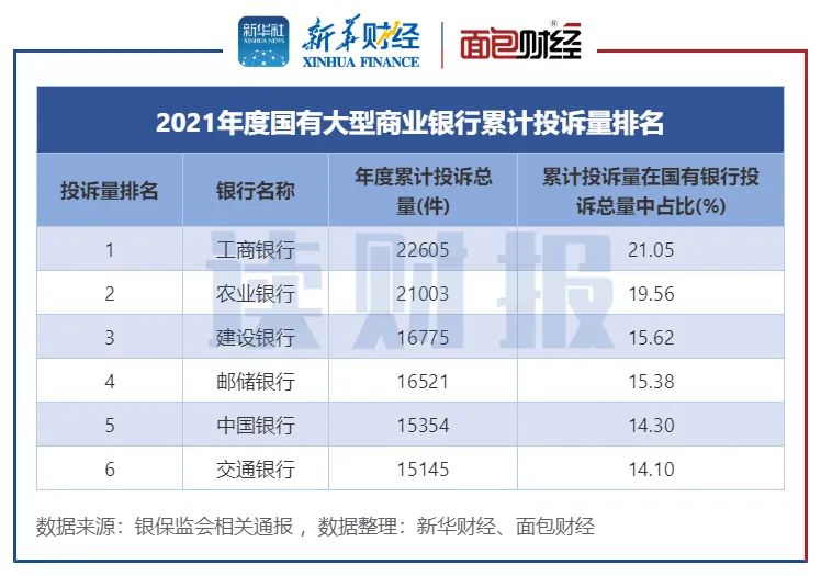 從年度數(shù)據(jù)看,2021全年國(guó)有銀行中消費(fèi)者累計(jì)投訴量前三名的分別是工商銀行、農(nóng)業(yè)銀行和建設(shè)銀行。