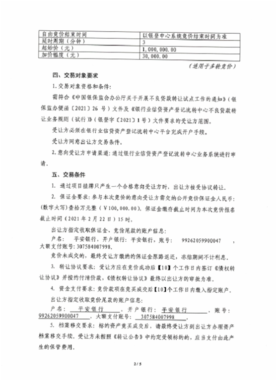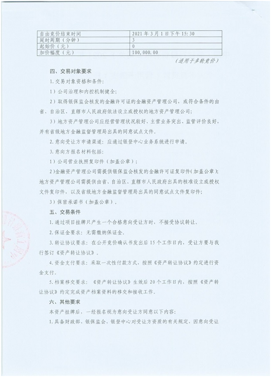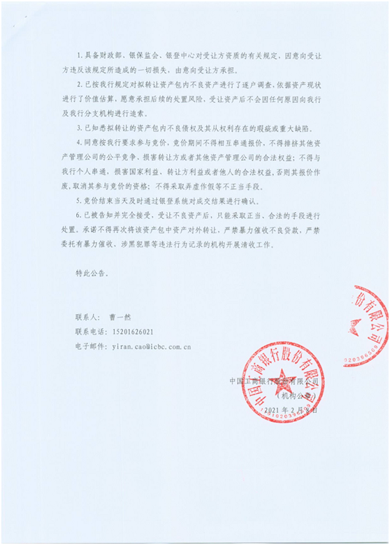 工商銀行第3期轉讓的標的亦為信用卡透支類不良貸款,共31戶(32筆),均未訴訟,逾期天數(按未嘗本息總額加權平均)168天。未嘗本金總額約2825萬元,未嘗利息總額約277萬元,未嘗本息總額約3102萬元,競價起始價0元,加價幅度10萬元。