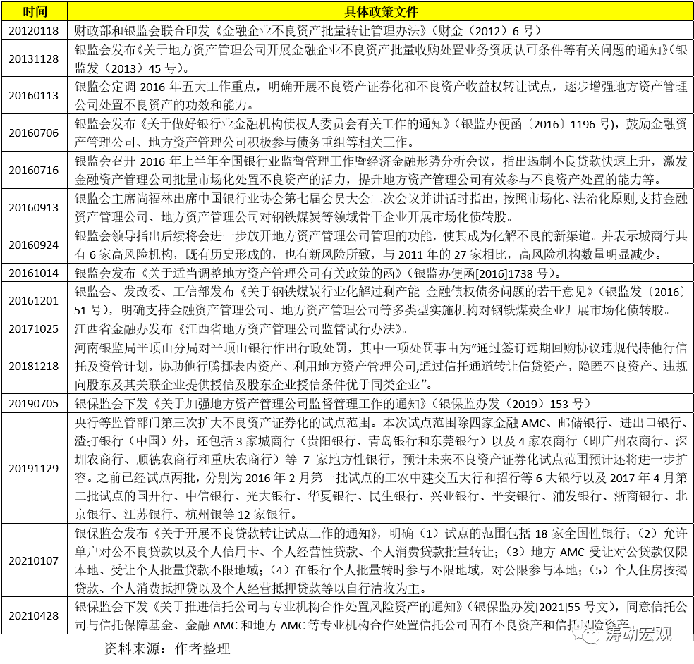 (3)2016年10月銀監會發布的《關于適當調整地方資產管理公司有關政策的函》(銀監辦便函[2016]1738號)允許各省可以增設一家地方AMC,并且在債務重組之外允許以對外轉讓等方式處置不良資產,且對受讓主體不受地域限制。