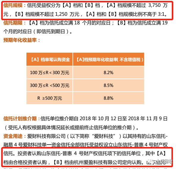 信托設立了一個3:1的比例,由愛財集團認購四分之一份額;并晚于一般投資者1個月到期;但算算日子,項目要到2020年6月才到期,而愛財集團已經倒了。