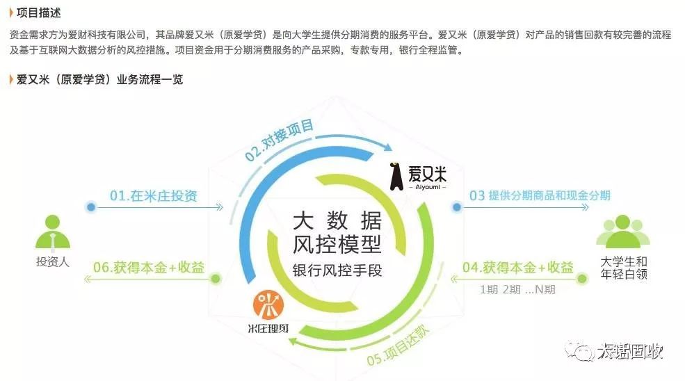 二是助貸機構本身的可靠性。助貸模式,信托公司只是募集資金,貸不貸基本掌握在助貸機構手里,那如果助貸機構想要套這個錢,會不會收集符合條件的借款人,然后歸集資金套現呢?下圖是愛財集團宣傳的自身業務模式: