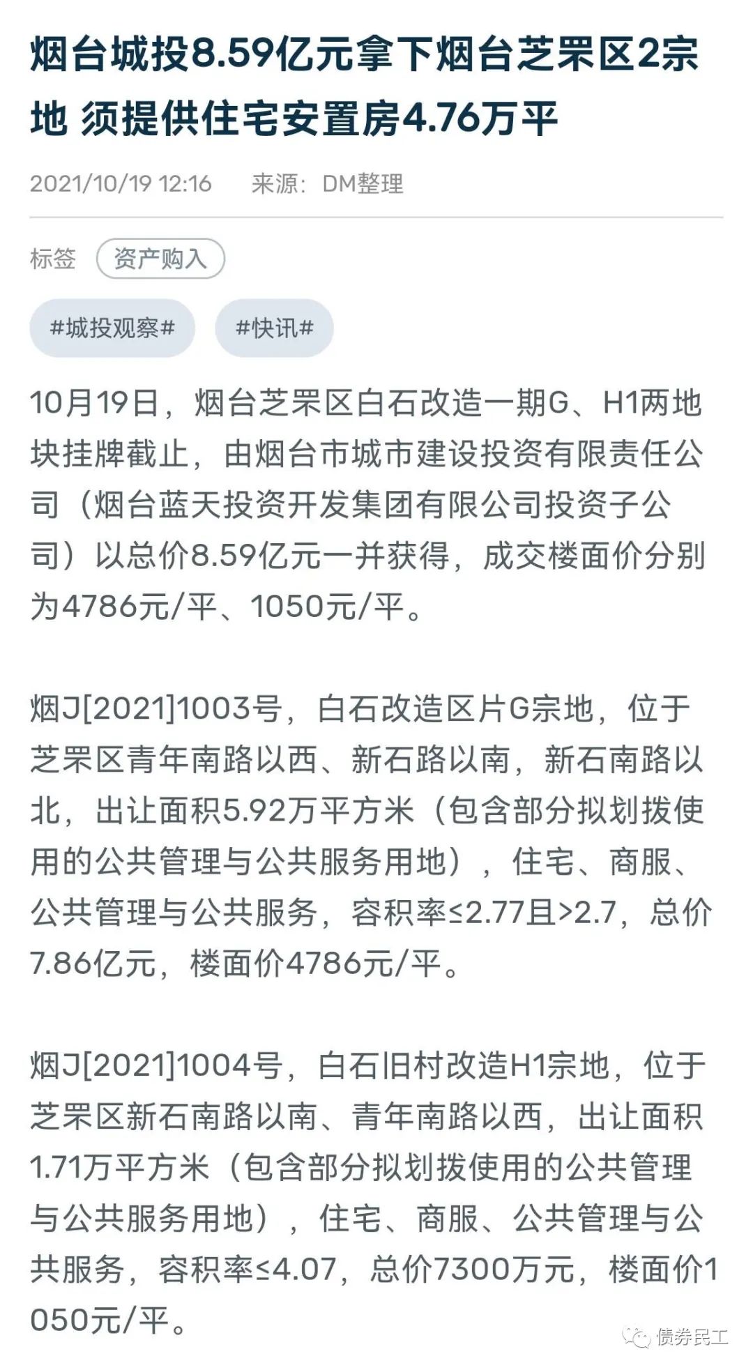 2021年10月19日,煙臺(tái)市城市建設(shè)投資有限責(zé)任公司的子公司以5.89億元的價(jià)格摘得煙臺(tái)市芝罘區(qū)總出讓面積為5.92萬(wàn)平方米的土地,包含住宅、商服公共管理與服務(wù)用地。