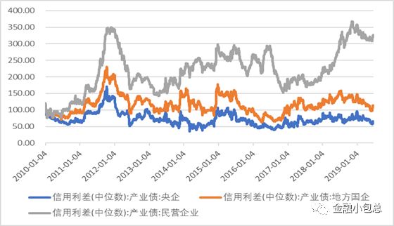 圖八:同等信用資質(zhì)下民企公開市場融資成本和國企央企的差距