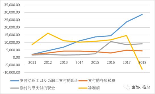 以ST中新為例,這五年來其凈利潤并沒有顯著提高,但各種顯性成本,如人工成本、各項(xiàng)稅費(fèi)和利息支出卻急劇增加,尤其是人工成本,ST中新用工成本從2011年的人均月薪2469元增長到了2018年的11613元,7年間增長了五倍,而其從事的電子業(yè)代工制造本身是毛利率極低的行業(yè),對(duì)成本非常敏感。