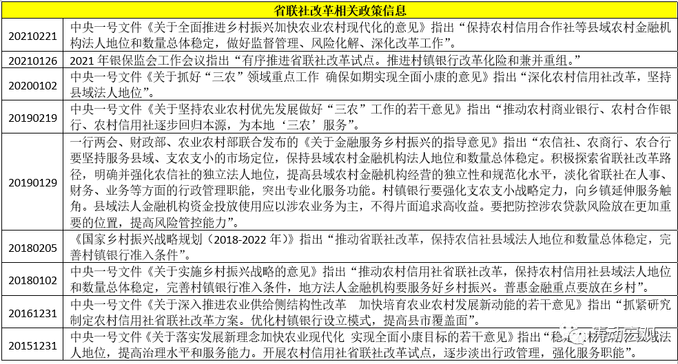 (1)2021年10月21日,銀保監(jiān)會(huì)首席檢查官、辦公廳主任王朝弟在國(guó)新辦發(fā)布會(huì)上表示“繼續(xù)深化農(nóng)信社改革已經(jīng)提上日程……把深化省聯(lián)社改革與提高農(nóng)信系統(tǒng)風(fēng)險(xiǎn)防控能力作為重點(diǎn),因地制宜,按照‘一省一策’的原則,支持各小(區(qū))從自身實(shí)際出發(fā),制定切實(shí)可行的農(nóng)信社改革方案……通過(guò)改革,能夠切實(shí)讓省聯(lián)社成為一個(gè)產(chǎn)權(quán)清晰、權(quán)責(zé)明確、政企分開(kāi)、管理規(guī)范的現(xiàn)代化金融企業(yè)”,同時(shí)在該發(fā)布會(huì)上,王朝弟還透露絕大部分省份已經(jīng)上報(bào)了深化農(nóng)信社改革方案,且浙江省的農(nóng)信社改革方案即將落地。