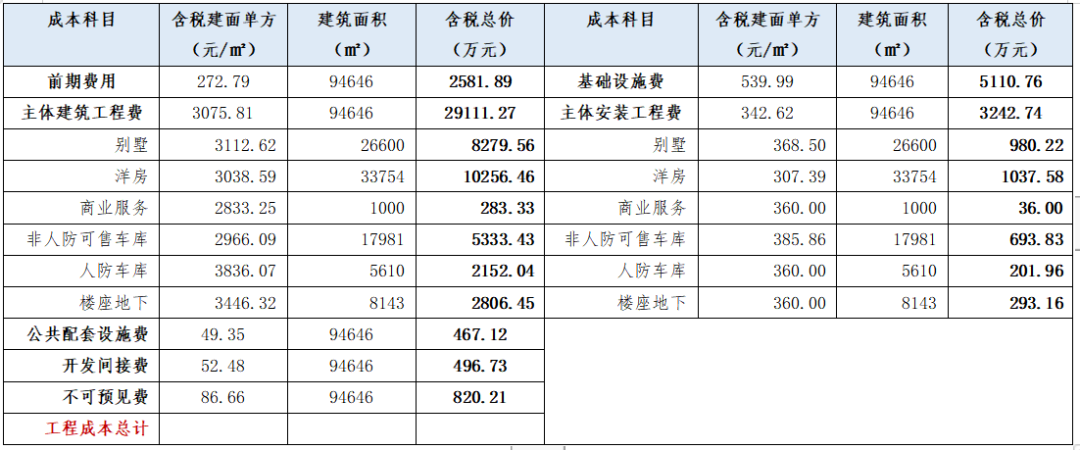 工程成本通常包括:前期工程費、主體建安工程費、景觀環(huán)境工程費、社區(qū)管網工程費、公共配套設施成本、工程建設其他費用以及開發(fā)間接費等。