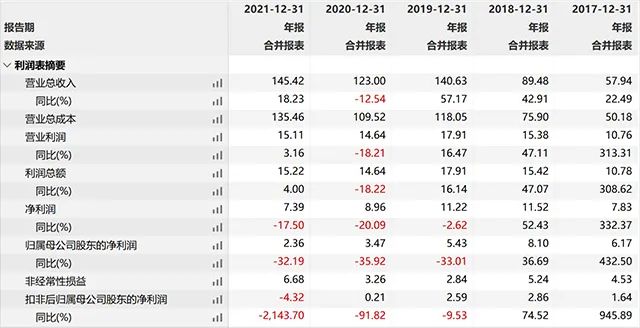 年報數(shù)據(jù)顯示,2021年公司營收145.42億元、利潤總額15.22億元,同比漲幅“止跌”,但增幅不算大,分別同比增長18.23%和4%。