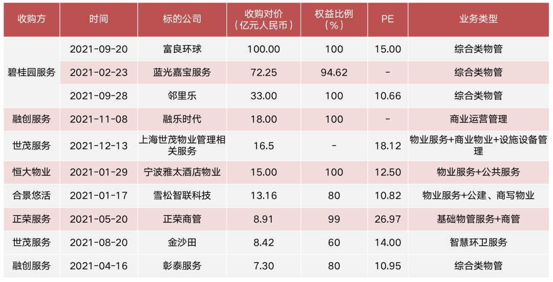 圖:2021年以來上市物企在增值服務領域收并購事項一覽