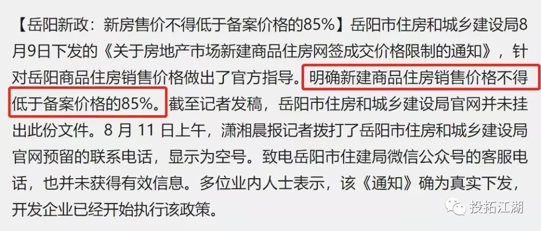 為了限制房價下跌,岳陽已經打出了明牌,最多允許房企打85折賣房。因為有的房企,私下里降價銷售,引發了市場的恐慌,必須嚴令禁止。