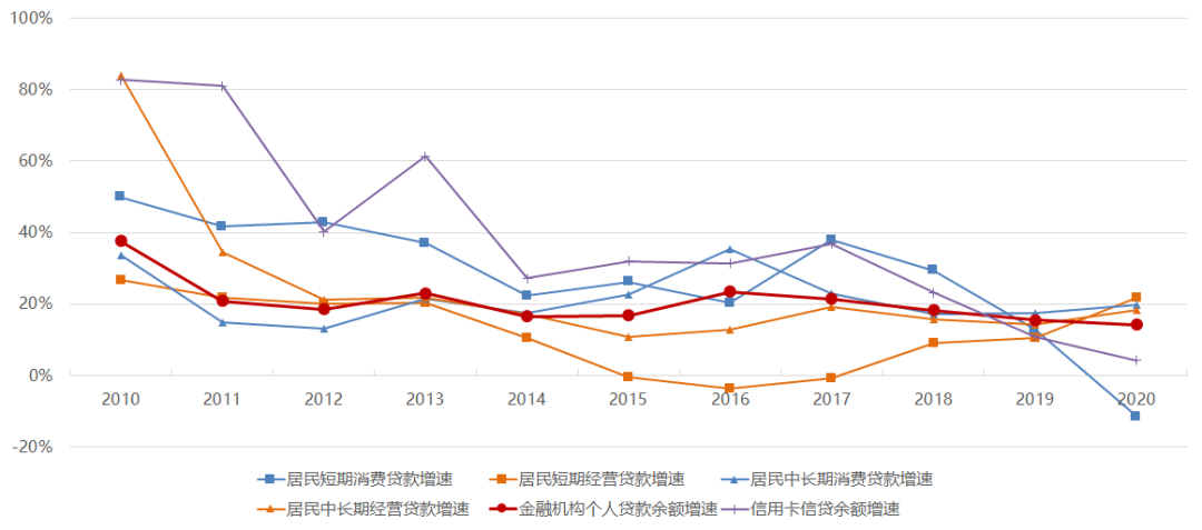 金融機(jī)構(gòu)居民部門信貸增速(2013年-2020年)
