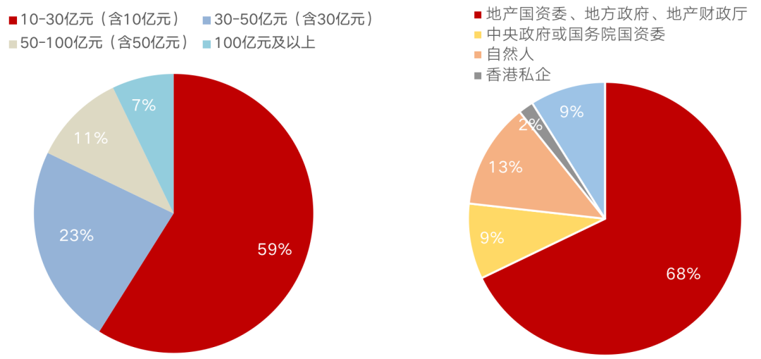 相較于全國性AMC完全受政府的掣肘,地方AMC股權(quán)結(jié)構(gòu)上更為靈活,近68%的地方AMC實際控制人為省級政府,13%的地方AMC實控人為自然人,9%的地方AMC股權(quán)分散無實控人,其中不乏有企業(yè)參股以便未來更好地開展業(yè)務(wù)合作。但地方AMC資金實力較弱,注冊資本100億元以上的僅占7%。