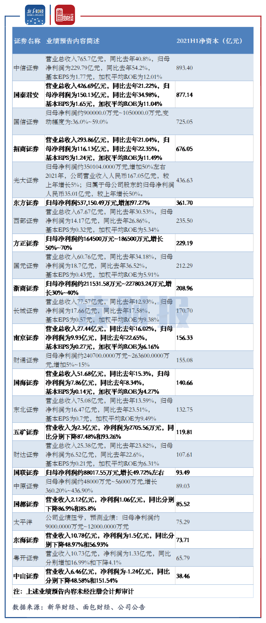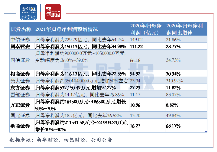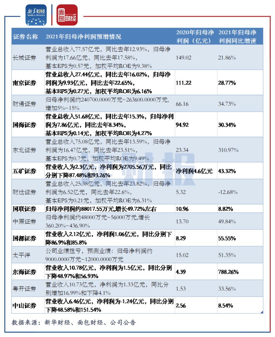 包括滬深兩市上市券商及新三板掛牌券商在內,目前已經有24家券商發布2021年業績預告或快報。