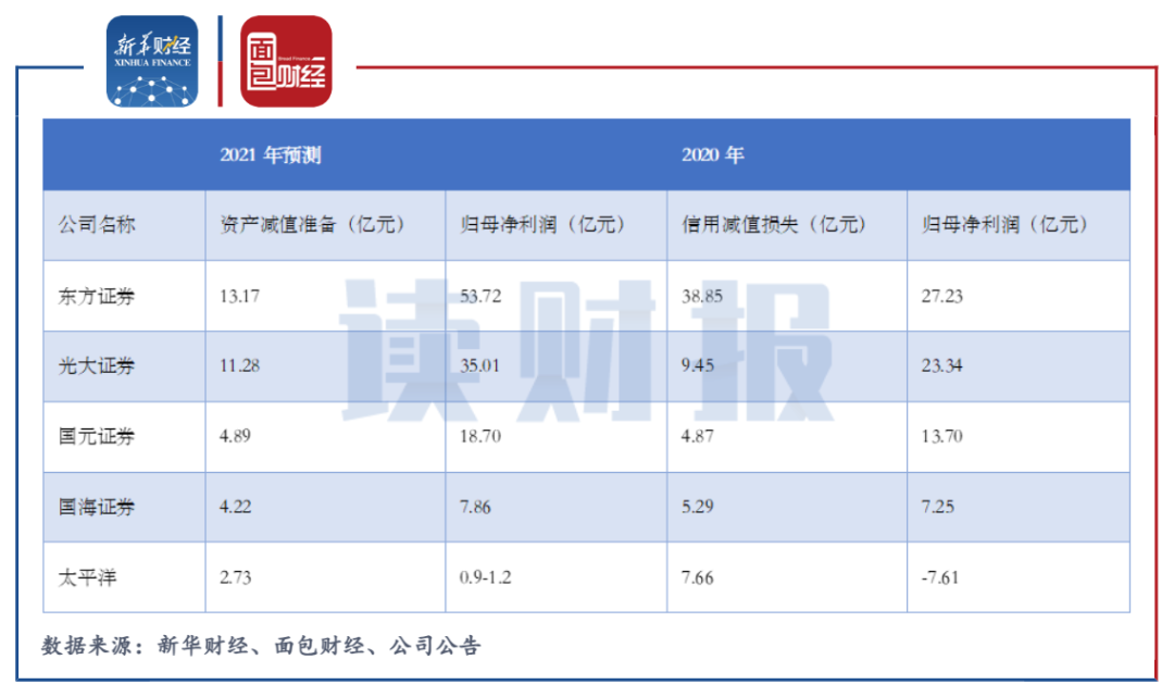 截至2022年2月上旬,東方證券、光大證券、國元證券、國海證券和太平洋發布計提資產減值準備的公告。券商計提的資產減值準備均對當期凈利潤造成一定不利影響。