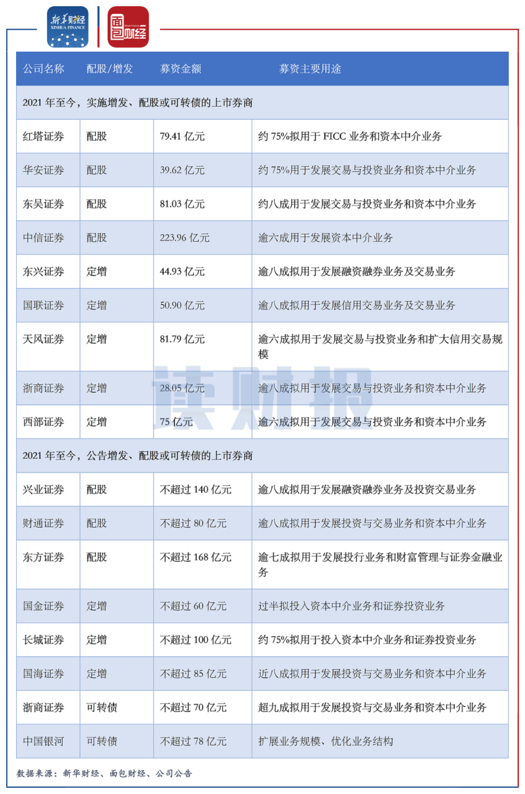 為了應對市場競爭,多家券商通過增發、配股或發行可轉債等方式募資補血。