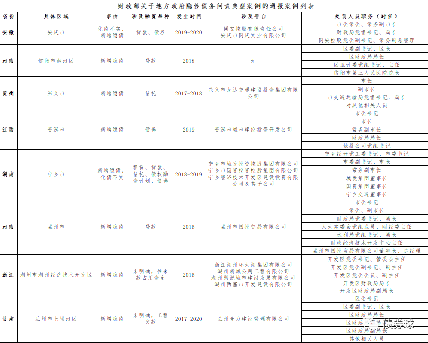 5月18日,財政部發布了《財政部關于地方政府隱性債務問責典型案例的通報》