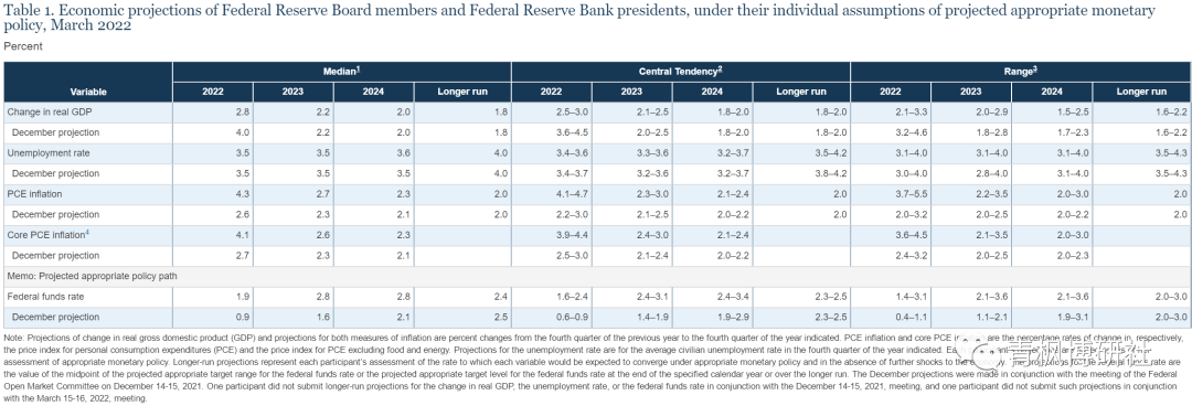 也即受各種因素影響,美聯儲對今年經濟基本面的判斷趨于保守,對通脹水平的判斷更顯不樂觀,通脹的高位或持續高位將會進一步影響美聯儲的決策。