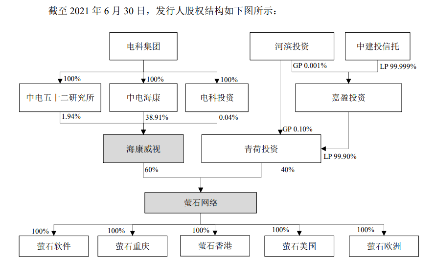 螢石網(wǎng)絡(luò)的股權(quán)結(jié)構(gòu)較為簡單,其控股股東??低曋苯映钟泄?0% 的股份。青荷投資是公司另一位股東,截至招股書簽署日持有公司40%的股份。據(jù)介紹,青荷投資系海康威視跟投計劃對創(chuàng)新業(yè)務(wù)進(jìn)行跟投的持股平臺。