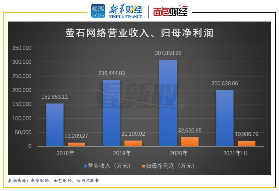 2021年上半年,螢石網(wǎng)絡(luò)分別實現(xiàn)營收、歸母凈利潤20.06億元和2億元。