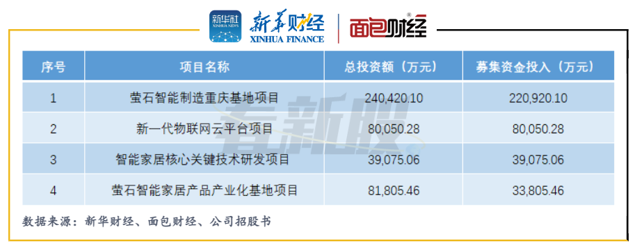 此次上市,螢石網(wǎng)絡(luò)計劃融資37.39億元,主要用于螢石智能制造重慶基地、新一代物聯(lián)網(wǎng)云平臺、智能家居核心關(guān)鍵技術(shù)研發(fā)以及螢石智能家居產(chǎn)品產(chǎn)業(yè)化基地項目。