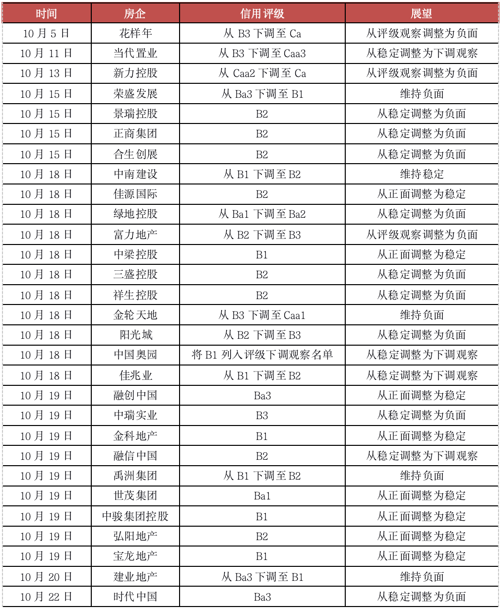 表:2021年10月穆迪集中下調(diào)房企評(píng)級(jí)及展望情況