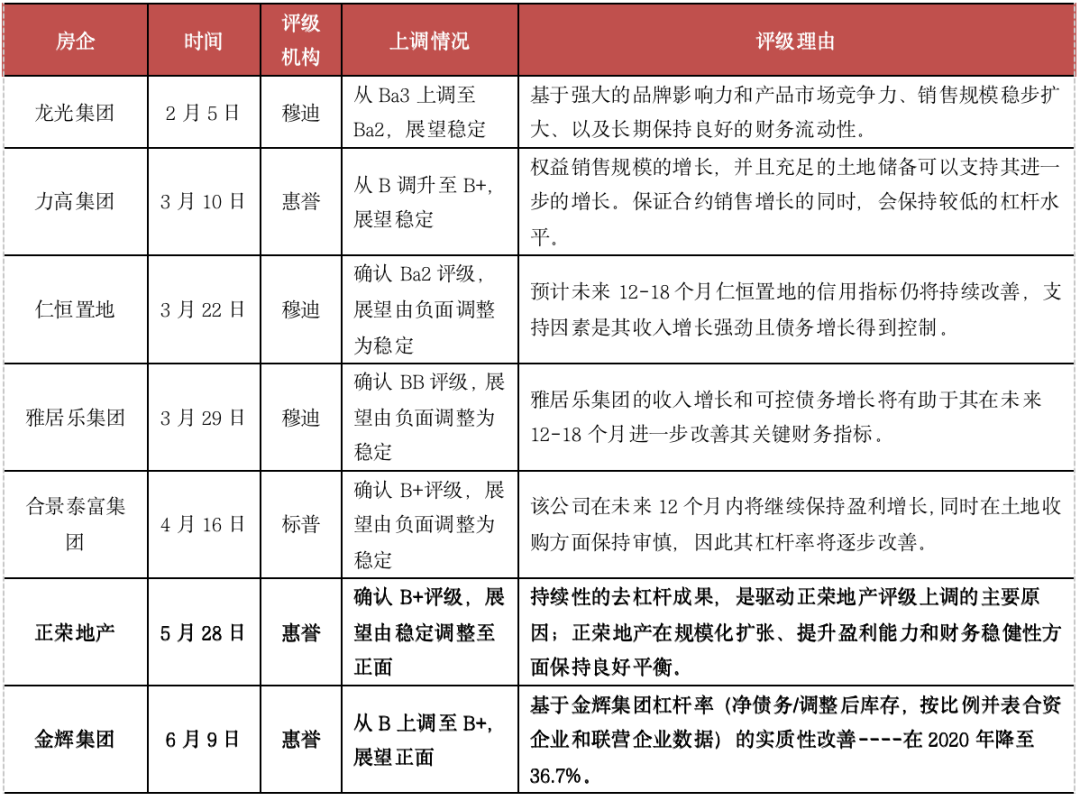 表:2021年評(píng)級(jí)上調(diào)房企情況