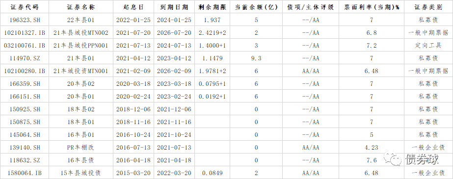 豐縣城投累計(jì)發(fā)行13只債券,其中有兩只中票、1只PPN、兩只企業(yè)債和8只非公開(kāi)公司債。目前處于存續(xù)狀態(tài)的債券有8只,其中有兩只中票、1只PPN、1只企業(yè)債和4只非公開(kāi)公司債。