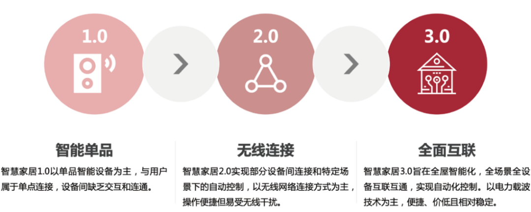 2016年,由工信部和國家標準化管理委員會共同印發的《智慧家庭綜合標準化體系建設指南》提出,到2020年初步建立符合我國智慧家庭產業發展需要的標準體系;2017年初,智能家居又由原九大升級為六大重點領域應用示范工程;2018年10月,國務院印發的《關于完善促進消費體制機制,進一步激發居民消費潛力的若干意見》,也明確了升級智能化、高端化、融合化信息產品,重點發展適應消費升級的智慧家庭產品等前沿消費產品。2020年,全屋智能作為數字經濟重點產業中物聯網的重點內容。