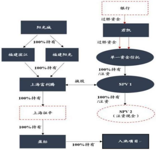 1、福州君凱作為委托人設立單一資金信托計劃,總規模12.10億元。受托人代表信托計劃出資6.20億元設立SPV1,SPV1出資6.20億元設立SPV2。