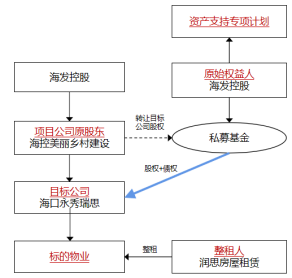 3、私募投資基金向海發控的全資子公司海控鄉建支付目標公司股權轉讓價款,取得目標公司100%股權從而間接控制底層資產權益。