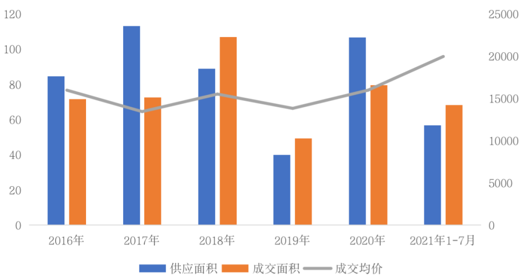 圖:2016年-2021年前7月衢州主城區(qū)商品住宅供求量價(單位:萬平方米、元/平方米)