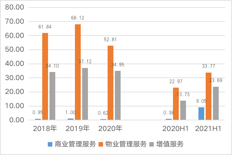 在委托管理模式之下,物業管理服務一直為主要營收來源,收入占比均達到50%以上,而商業管理服務在2021年上半年由不足1億元的營收水平猛增至9.05億元,主要是因為2018年至2020年,委托管理模式下萬達商管并未對運營管理服務收取費用,僅對開業前的咨詢服務進行收費,因此營收較低,自2021年5月開始對運營管理收取服務費以致該部分營收猛增。