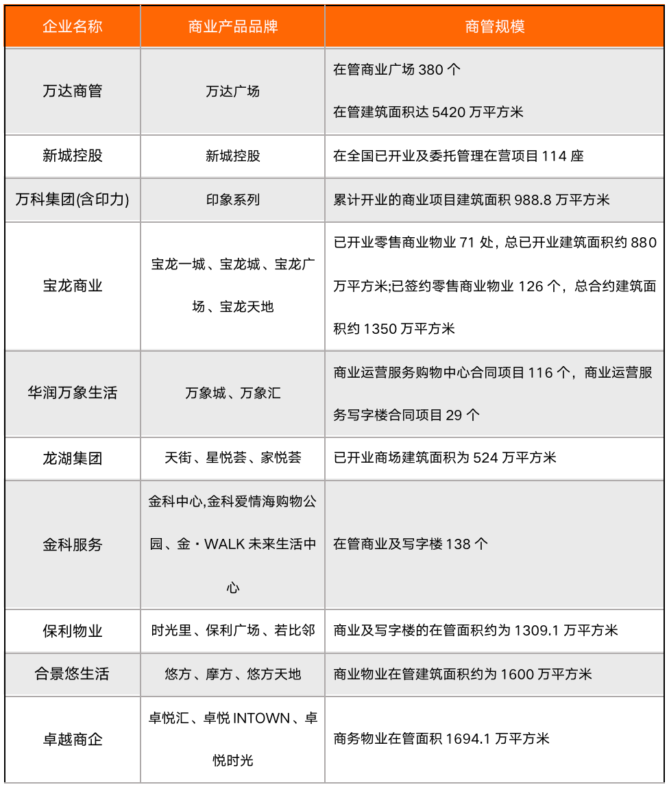 根據弗若斯特沙利文的數據顯示,截至2020年年末,萬達商管在管建筑面積排在中國乃至世界第一的位置,超過中國第二名至第十名的總和;儲備建筑面積以及管理第三方商業廣場數量皆位于首位。