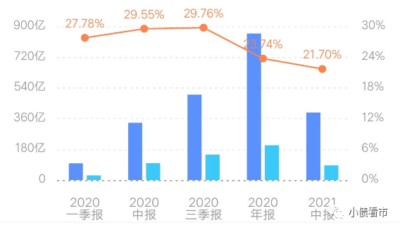 和其他房企一樣,富力地產的盈利能力也在持續下滑,2021年上半年其毛利率為21.7%,同比下降7.9個百分點,較2020年末下降2.04個百分點,低于行業平均水平。