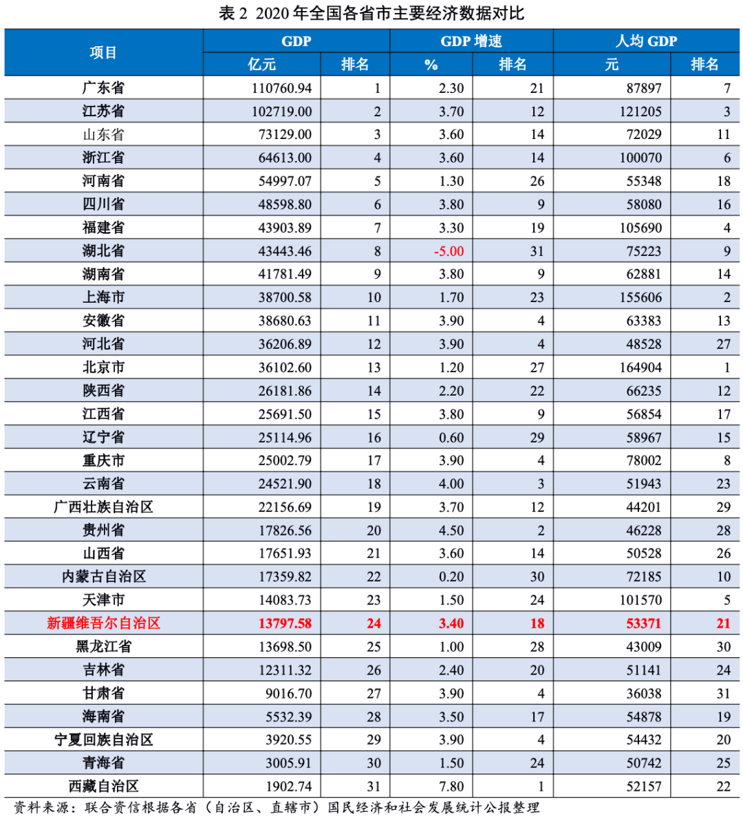 新疆地處中國西北部,戰略地位重要,資源豐富。新疆經濟總量和人均GDP位于全國中下游水平,產業結構以工業和第三產業為主。2018-2020年,新疆經濟保持增長,2020年受疫情等因素影響,GDP增速有所下降;2021年前三季度,新疆GDP同比增長8.8%。