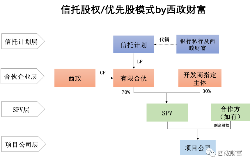 2.西政作為GP發起設立有限合伙企業,集合信托計劃認購合伙份額(備注:目前亦有信托公司在資金投放時直接以信托計劃持有項目公司股權,而不另行搭建合伙企業)。