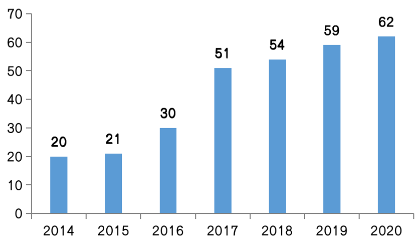 圖:2014年以來70家百強上市房企中披露ESG報告的企業數量