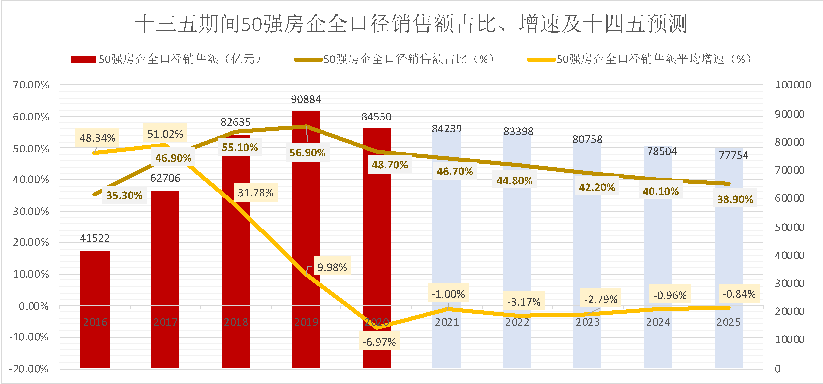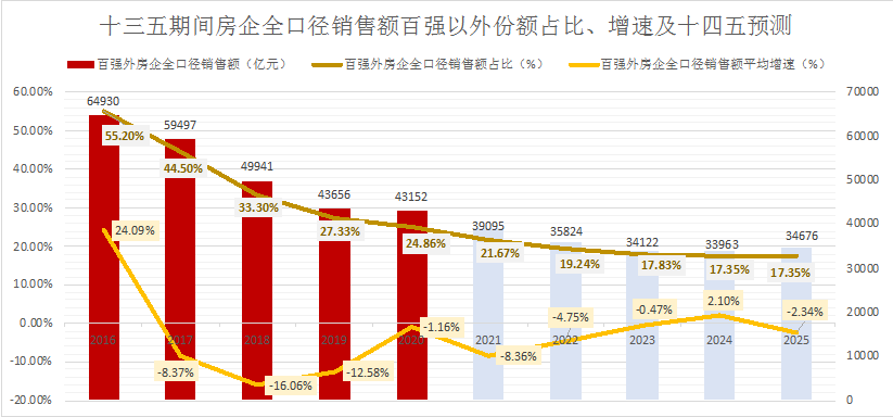 十四五期間百強外房企銷售額市場份額仍將繼續下降;
