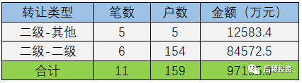 根據已有數據顯示,三級市場總成交159戶,總成交金額近10億元。2019年三級市場成交量與去年持平。二級投資機構之間的債權出讓在三級市場中占比84%。對比18年,二級投資機構之間的轉讓體量增加7億元;二級投資機構-其他減少3億元,未查詢到19年其他類出讓成交記錄。
