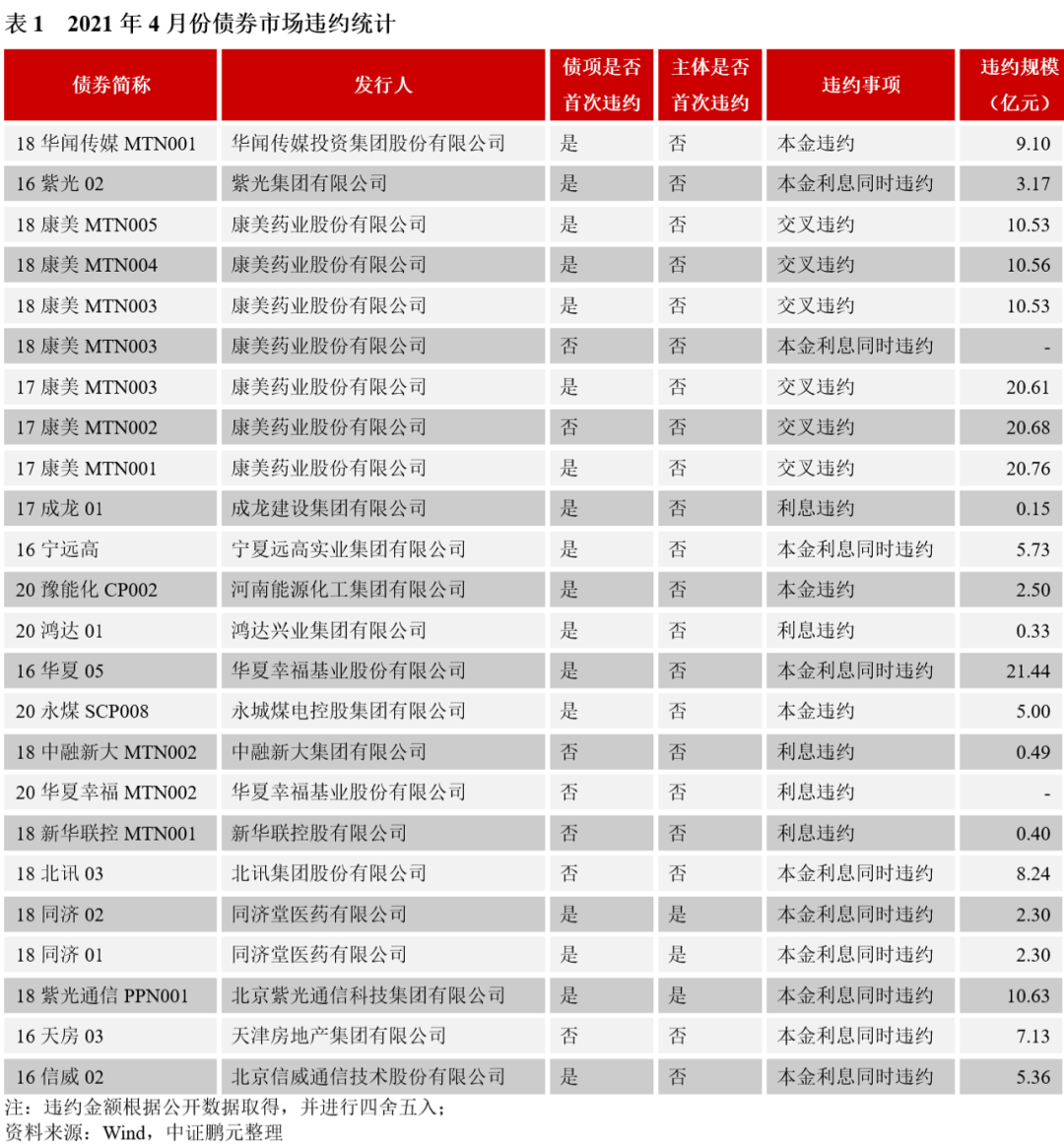 2021年4月,新增違約主體2家,分別是紫光通信和同濟堂。